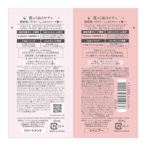 コーセーコスメポート Je l’aime(ジュレーム)リラックス ミッドナイトリペア シャンプー&ヘアトリートメント トライアルセット(ストレート&リッチ)10mL+10mL