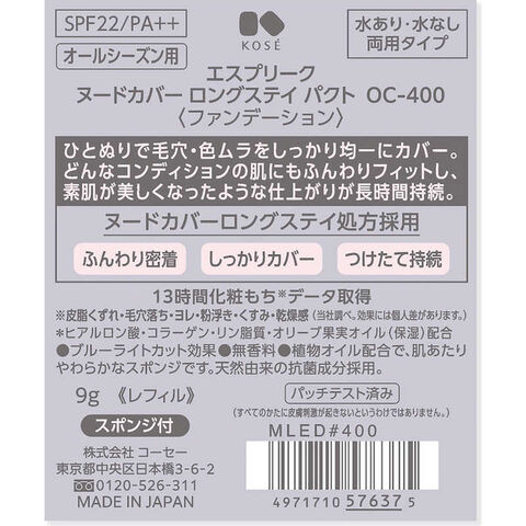 コーセー ESPRIQUE (エスプリーク) ヌードカバー ロングステイ パクト レフィル OC-400 オークル (9g)