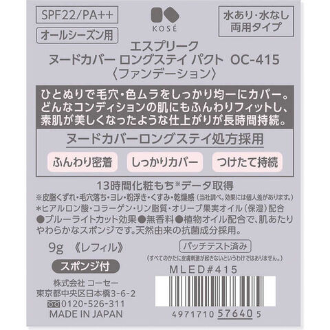 コーセー ESPRIQUE (エスプリーク) ヌードカバー ロングステイ パクト レフィル OC-415 オークル (9g)