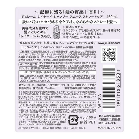 コーセーコスメポート Je l’aime(ジュレーム) レイヤード シャンプー (スムース ストレートケア)460ml