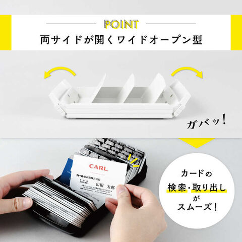 ●本体両側が外側に開くため、名刺が1枚ずつ検索しやすくなっている名刺整理ケースです。
