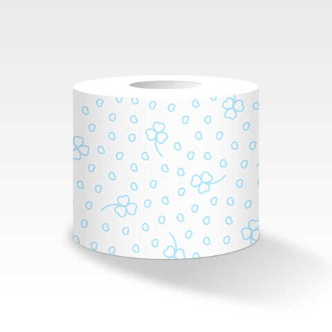 古紙100%で地球にやさしいトイレットロール。新感覚の立体エンボス製法で可愛いクローバー柄の2枚重ね。