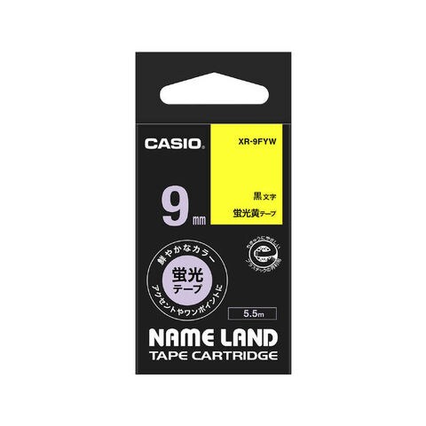 カシオ CASIO ネームランド テープカートリッジ (蛍光テープ9mm) XR‐9FYW (蛍光イエロー×黒文字)