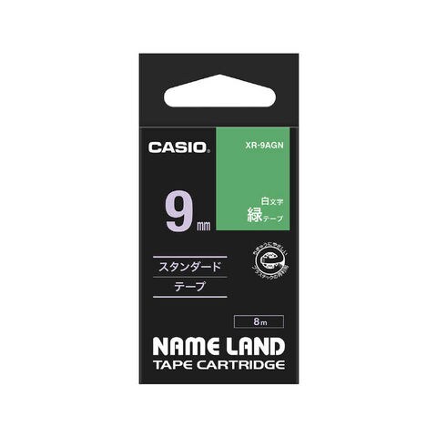 カシオ CASIO ネームランド テープカートリッジ(白文字テープ・9mm) XR‐9AGN (緑×白文字)