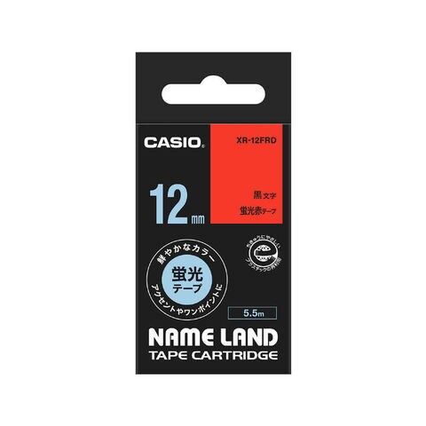 カシオ CASIO ネームランド テープカートリッジ(蛍光色テープ・12mm) XR‐12FRD (蛍光赤×黒文字)