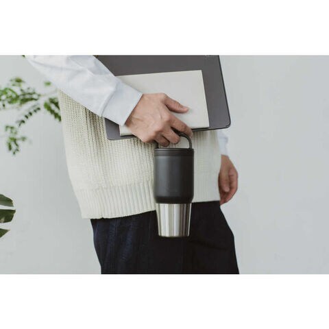 段差のある形状で大容量でも持ちやすく、自動車のドリンクホルダーなどにも入れやすい。