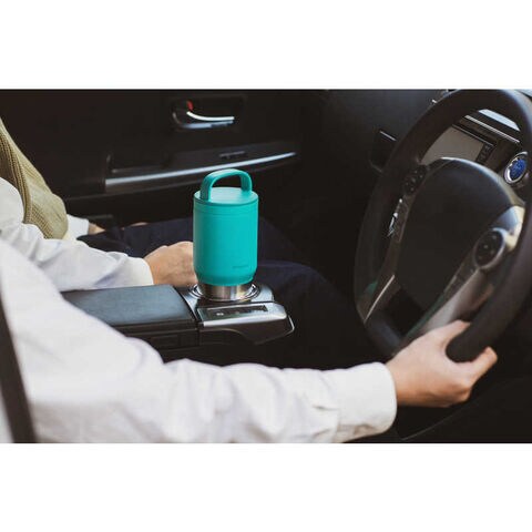 段差のある形状で大容量でも持ちやすく、自動車のドリンクホルダーなどにも入れやすい。