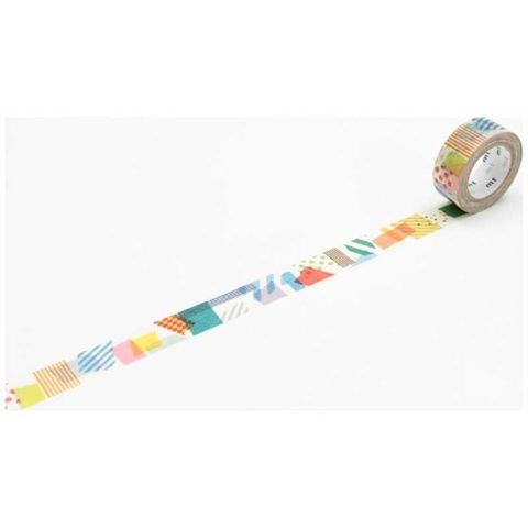 小さなお子様の手になじむ ミニサイズmt。ランダムにテープを貼りつけたぺたぺた柄です。