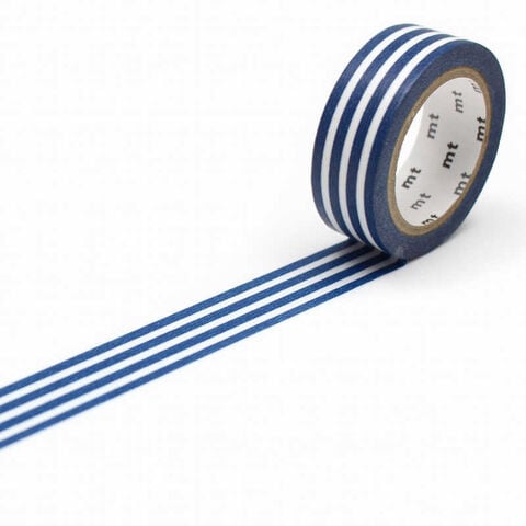 カモ井加工紙 マスキングテープ mt 1P ボーダー・インディゴ MT01D386R