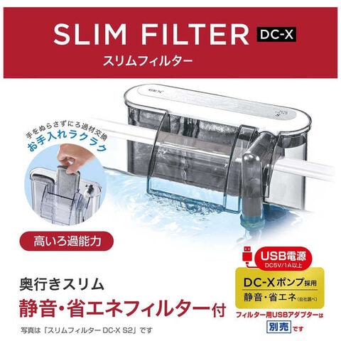 ●新開発DC-Xポンプ採用、ろ過性能UP、極めて静音&省エネ化を実現した「スリムフィルター DC-X S2」をセット。