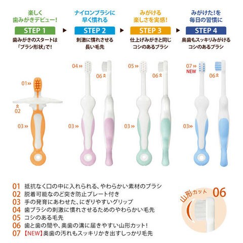 ブラシの刺激に慣れさせるため、毛先がやわらかくなっています。