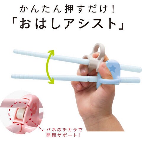 ●簡単押すだけおはしアシスト、バネの力で開閉をサポート、初めてでもすぐにつかめます。