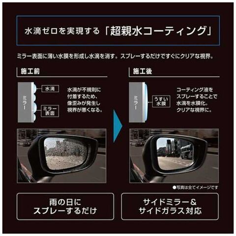 ●サイドミラーにもサイドガラスにも使える水滴消しスプレー