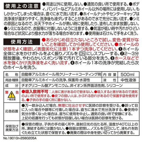 ●ブレーキダストを化学のチカラで強力除去!撥水コーティング効果でキレイが続くホイールクリーナー!