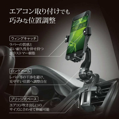 片手で簡単ホールド&エアコン取付で巧みな位置調整が可能なスマートフォンホルダー。