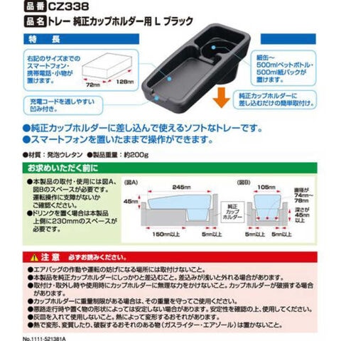 ●純正カップホルダーに差し込んで使えるソフトなトレーです。