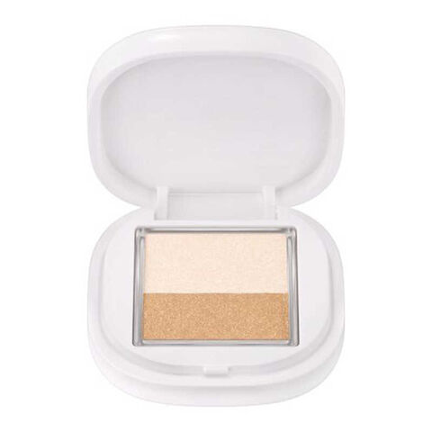 くすみを飛ばし明るく優しい印象を演出する同色系の2色と、チラチラと輝いて自然なキラめきを与える細かいラメ&明るさアップパウダーで、パッと明るい印象に。