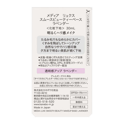 カネボウ media luxe (メディア リュクス) スムースビューティーベース ラベンダー (30ml)