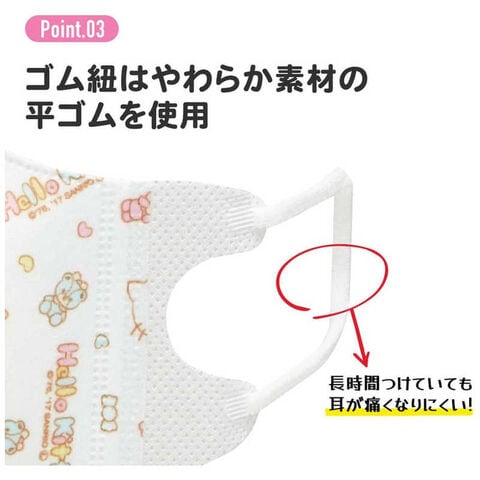 耳が痛くなりにくい柔らか素材の平ゴムを使用。