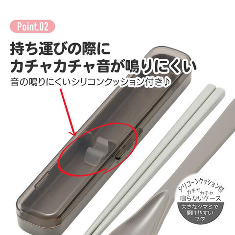 シリコンクッションが付いているので、持ち運びの際にカチャカチャ音が鳴らない!箸とスプーンのセット!重ねて収納コンパクト!食洗機対応です。