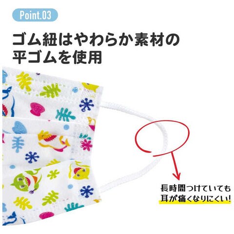 耳が痛くなりにくいやわらか素材の平ゴムを使用。