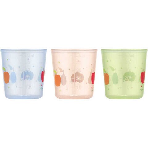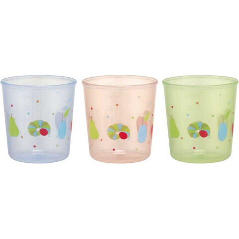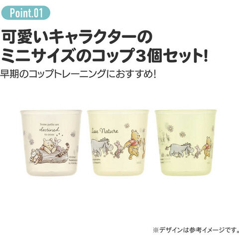 可愛いキャラクターのミニサイズのコップ3個セット!小さな手と口にぴったりな形と大きさでお子様のつかむ、飲む練習に最適です。