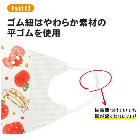 耳が痛くなりにくい、やわらか素材の平ゴムを使用。