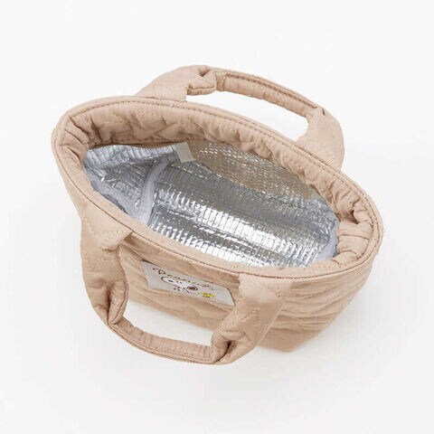 キルティング生地の保温・保冷ジャー用ランチバッグで、内側は保温、保冷効果のあるアルミ蒸着素材。