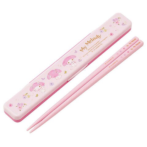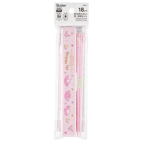 スケーター マイメロ/パステル水彩花柄 音の鳴らない箸・箸箱セット18cm ABC3