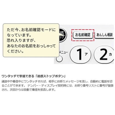 ●ワンタッチで詐欺・迷惑電話を撃退できる「迷惑ストップボタン」を搭載
