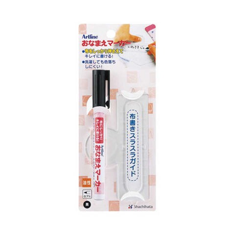 おなまえマーカーは、布をしっかり押さえる「布書きスラスラガイド」付き。
