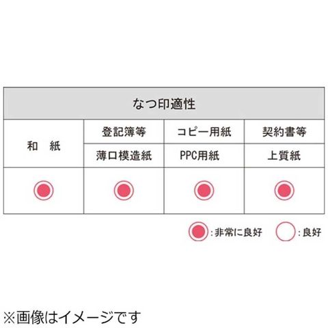 ※コート紙、アート紙等、朱の油を吸収しにくい紙面へのなつ印や、朱の油の付着量が多い場合は、乾燥が遅くなることがあります。また、目の粗い紙では若干にじむことがあります。