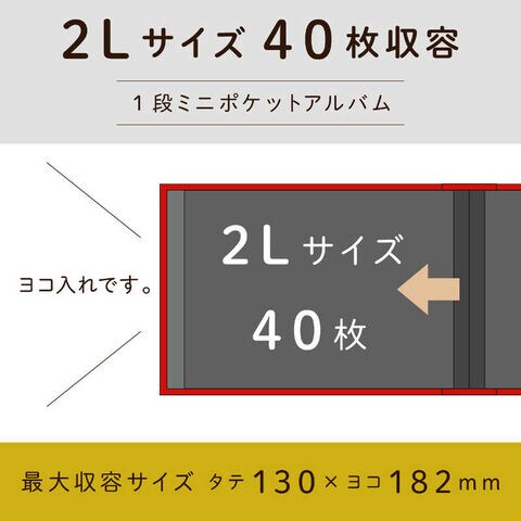 ●2Lサイズ40枚収容 (最大収容サイズ: 縦130×横182mmまで)