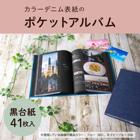カジュアルなカラーデニムを使用した布貼り表紙のポケットアルバムです。