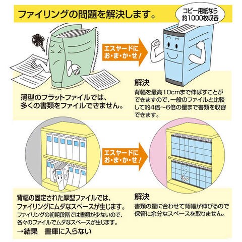 ●書類の量に合わせて背幅が伸びますので保管に余分なスペースをとりません