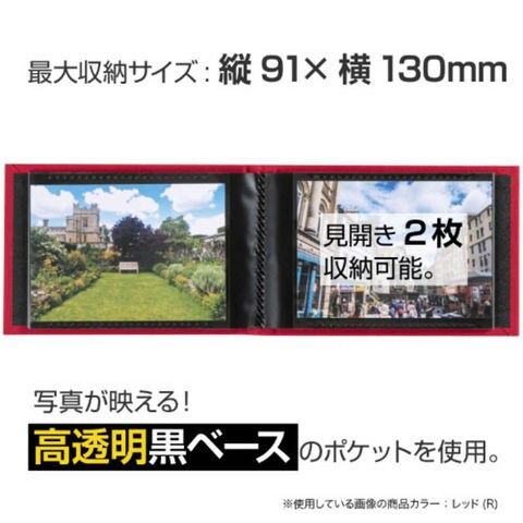 仕様1:■本体サイズ:縦111×横158×背幅20mm■ポケット黒 Lサイズ1段 40枚収容■表紙材質:布■中芯材質:再生紙■溶着式ポケット■最大収容サイズ:91×130mm