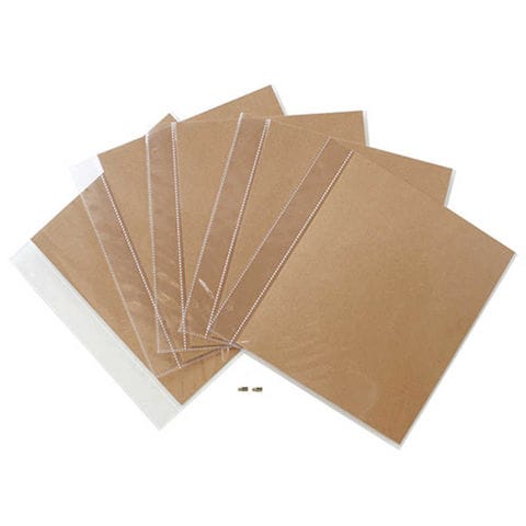 仕様1:本体サイズ:H175×W181×D5mmカード台紙サイズ:H171×W153mm仕様:クラフト台紙5枚入台紙材質:紙、OPP継ビス材質:真鍮※メッキ