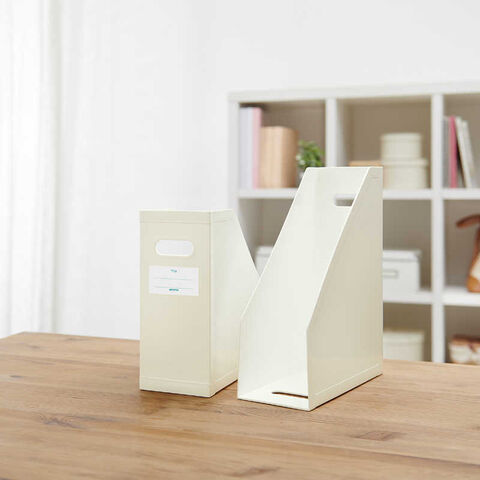 書棚やデスク上などスペースに合わせてタテ・ヨコ自由に使える、便利なA4サイズのフリー型収納ボックス。フリー型なのでサイズを選ばず、書籍、生活用品のストックなどの収納に最適。分類整理に便利なタイトルシール付。
