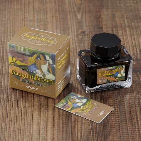 仕様1:・万年筆用水性染料インク・内容量:20ml・色名:ゴーギャンブラウン・本体サイズ:W50×D33×H50mm・本体重量:97g・ボトル材質:ガラス・キャップ材質:PP・小箱サイズ:W52×D35×H52mm・箱材質:紙
