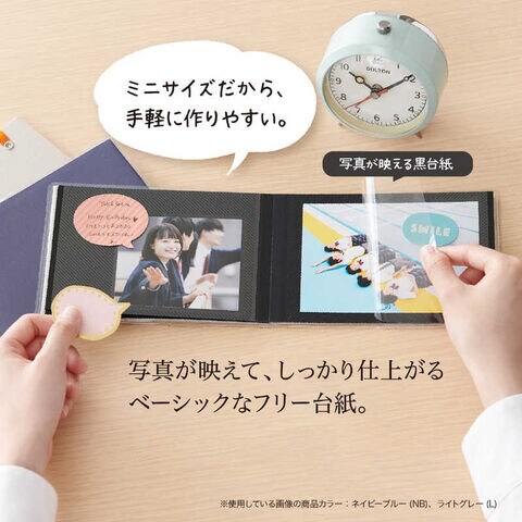 写真やメッセージを貼るだけで仕上がる、ミニサイズのフリー台紙アルバム。写真が映えて、しっかり仕上がるベーシックな黒台紙(フリー台紙)。