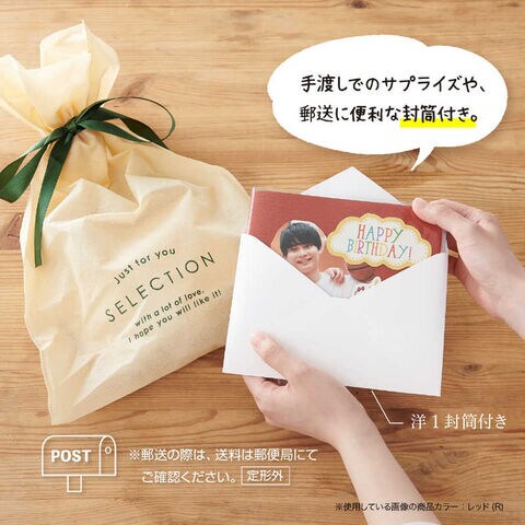 ギフトに適した、手渡しでのサプライズや郵送に便利な洋1封筒付き。遠方の友人や家族への贈り物にも便利です。