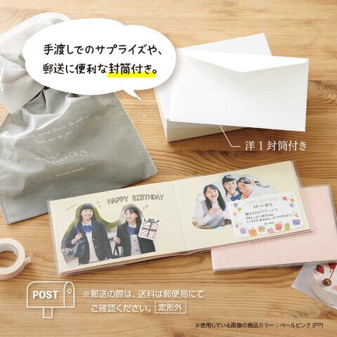 ギフトに適した、手渡しでのサプライズや郵送に便利な洋1封筒付き。遠方の友人や家族への贈り物にも便利です。