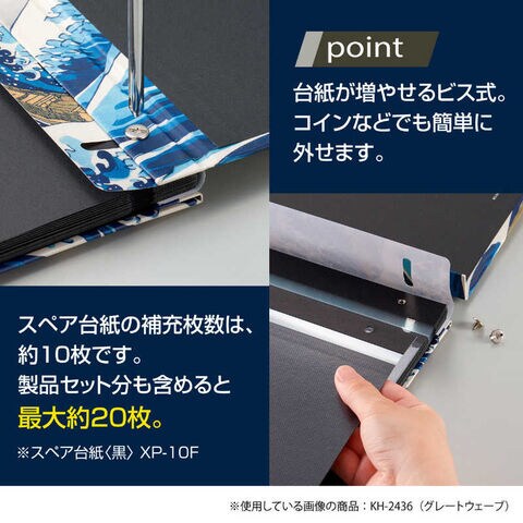 ・コインで簡単に外せるビスで、台紙を増やすことができます
