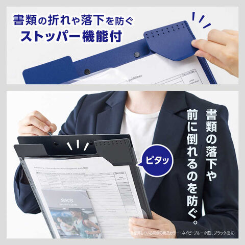 ●クリップは最大約50枚収容可能。すべり止めストッパー付のクリップが書類をしっかり固定します