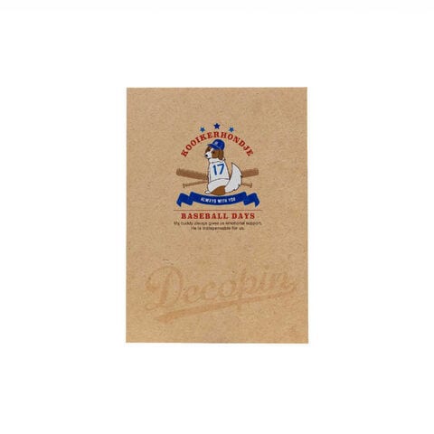 クラフト素材を背景に帽子をかぶったデコピンがかわいい表紙のB5ノート。