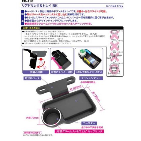 ●ヘッドレスト取付け専用のドリンク&トレイ(スライド機能付き)