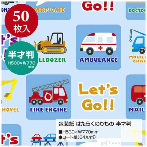 ササガワ 包装紙 はたらくのりもの 半才判 4901308 491308