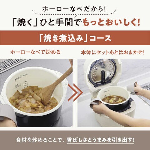先にコンロなどでホーローなべに入れた食材を炒め、そのまま本体にセットするだけ。