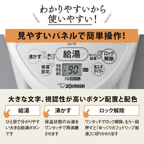 象印マホービン ZOJIRUSHI VE電気まほうびん 優湯生 [3.0L / 蒸気セーブ機能つき] ホワイト CV-TF30