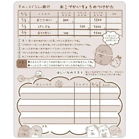 サンエックス すみっコぐらし NS40601 お小遣い帳 WCワクワクオコヅカイチョウ
